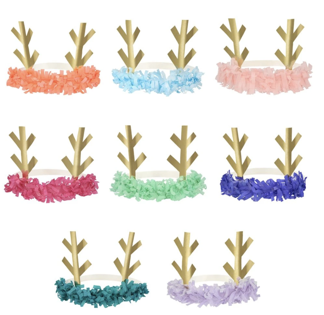 Why wear plain party hats this Christmas when you can wear these? Children and adults alike will love the fun of wearing reindeer headbands with vibrant tissue fringe and golden antlers.