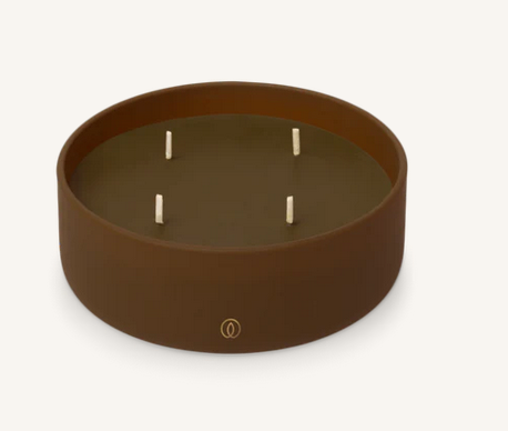 The candle is presented in a matte brown glass holder that offers a rustic look and easily complements various interior styles. With four wicks, the candle burns evenly and efficiently disperses the aroma throughout the room.