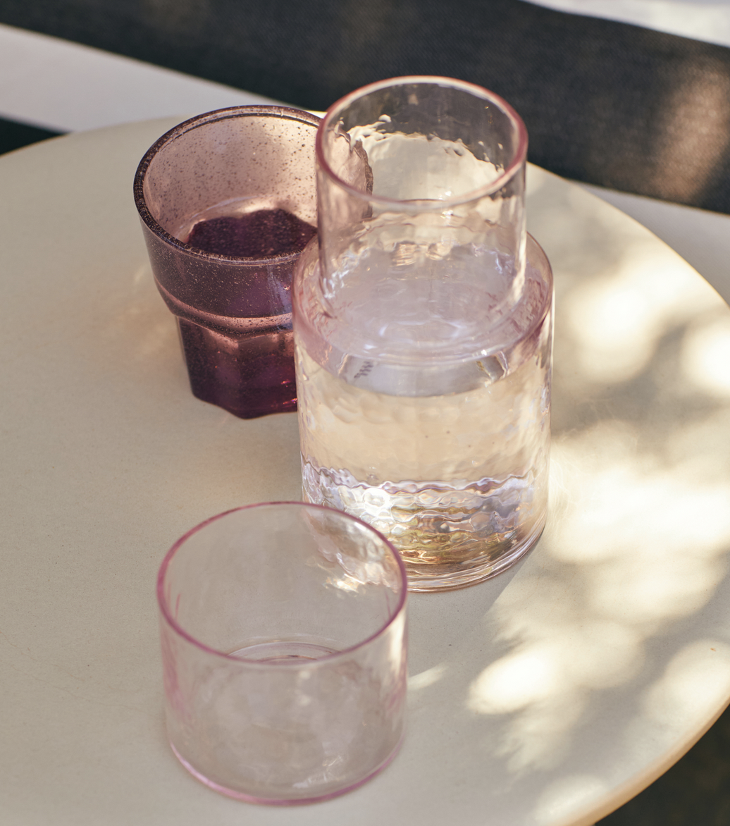 Complement your tableware with this matching drinking glass, designed to pair perfectly with our glass carafe. The soft pink colour and clean lines offer a cohesive look, while the durable glass material makes it ideal for daily use.
