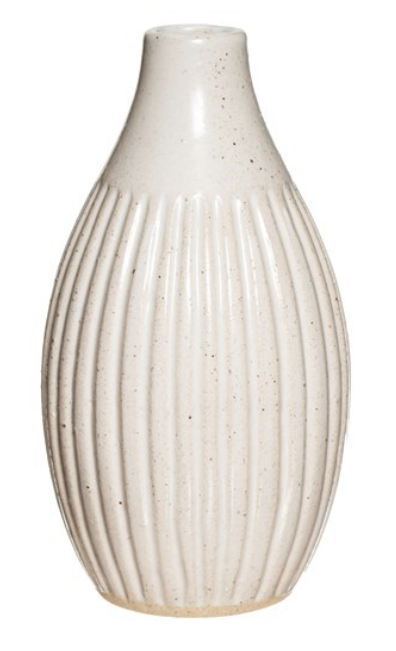 This cute speckled vase is made of off-white glaze and line grooves to emphasise its voluminous shapes. Put a beautiful flower in it and you have the perfect gift!