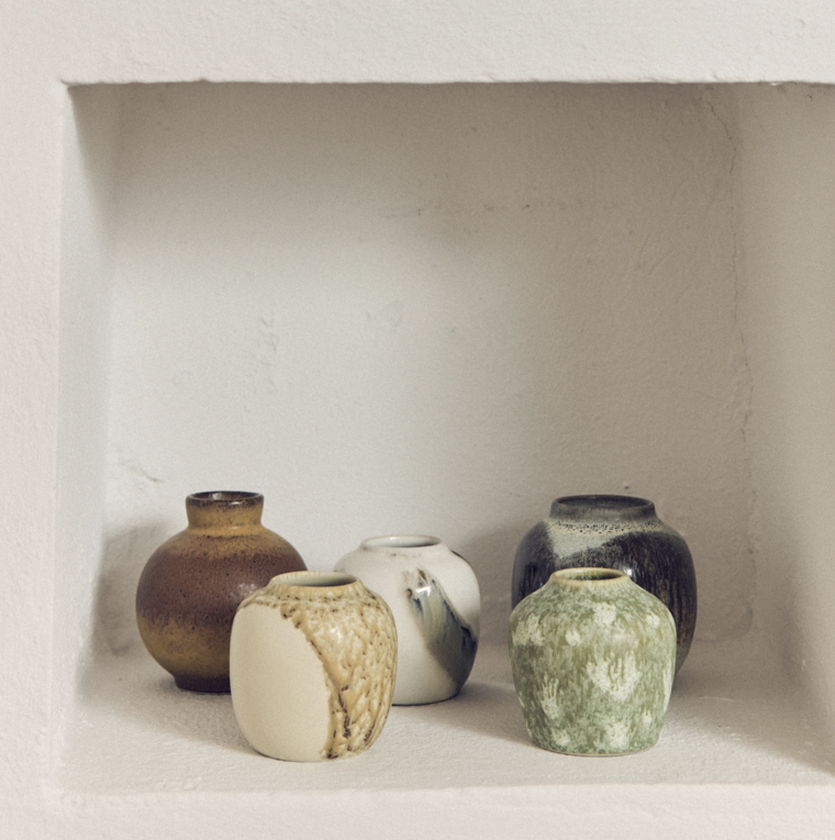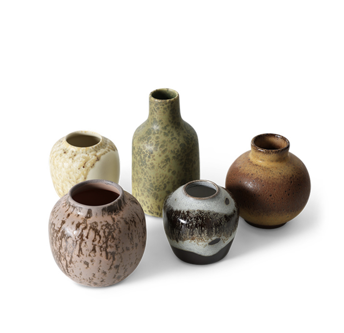 Elk HKliving 70s Ceramics vaasje is uniek met handgemaakte glazuur. Perfect voor een enkele bloem of als decoratief accent.