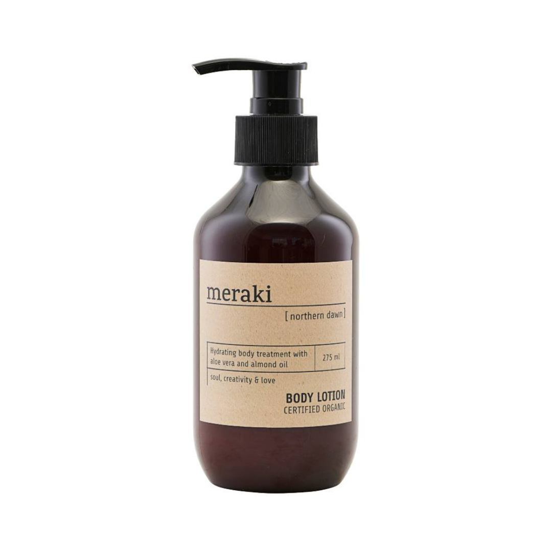 Meraki Body Lotion Northern Dawn is een verbazingwekkende en mooie bodylotion die geschikt is voor zelfs de meest gevoelige huid. Het is voor degenen die op zoek zijn naar milde en effectieve producten, maar tegelijkertijd schadelijke chemicaliën willen vermijden. Na een lekker bad is het tijd om het lichaam te hydrateren met een mooie crème. Northern Dawn, is een biologisch gecertificeerde bodylotion van Meraki, die biologische aloë vera en amandelolie bevat. Bij gebruik van de bodylotion wordt de huid gevoed, verzacht en gehydrateerd. De geurige lotion is geschikt voor alle huidtypen en kan dagelijks worden gebruikt. Met zijn eenvoudige en stijlvolle verpakking kunt u hem gemakkelijk in de badkamer achterlaten.