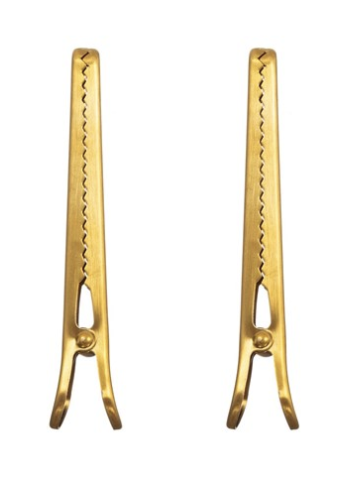 Een stijlvolle oplossing voor uw keuken. Van zakjes pasta en chips tot bakmeel en poedersuiker, deze set van twee lange koperen clips is perfect voor het afsluiten van uw voedselwaren en om ze vers te houden.