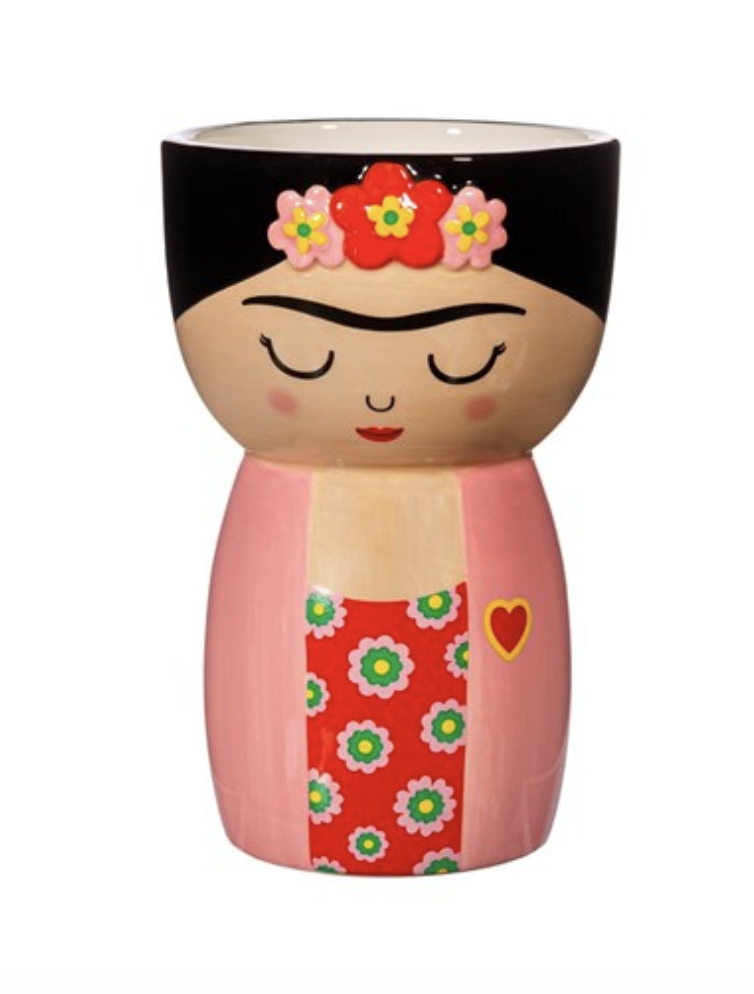Maak kennis met onze prachtige vaas in de vorm van Frida Kahlo, een levendige fusie van kunstzinnigheid en functionaliteit. Dit unieke meesterwerk toont Kahlo's iconische gezicht, ingewikkeld vervaardigd en versierd met een caleidoscoop aan kleuren. Omarm de geest van creativiteit als je je favoriete bloemen toont in dit prachtige eerbetoon aan de legendarische kunstenares, nu verkrijgbaar in onze webshop