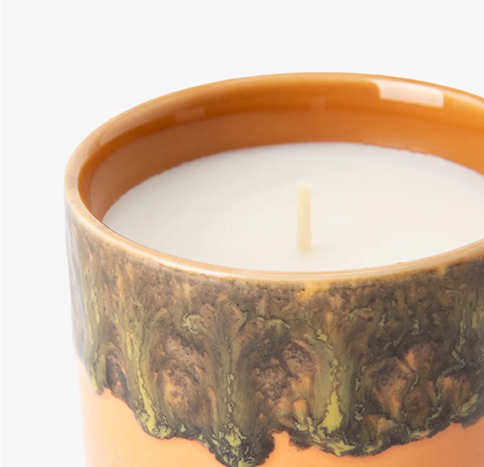 De HKliving 70s Ceramics Geurkaars Miami brengt de levendige energie van de stad in huis. De geur opent met een explosie van fruitige noten en evolueert naar een warme, romige vanille, die het luxueuze gevoel van Miami's stranden oproept. Elke kaars is handgemaakt en geplaatst in een retro keramieken pot, waardoor geen twee exemplaren hetzelfde zijn