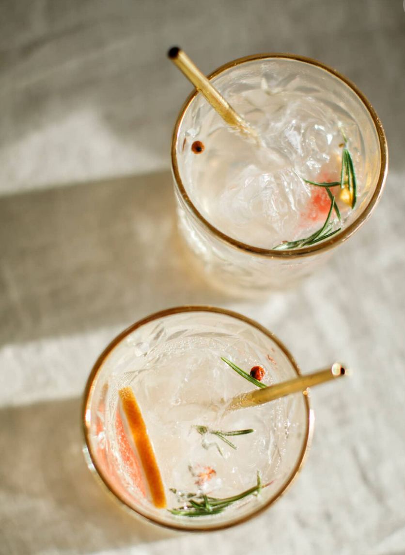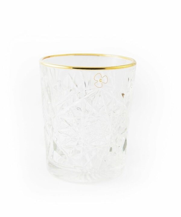 Een classy serveerglas met gouden randje, een perfecte combinatie met de Gin van het merk Clover.