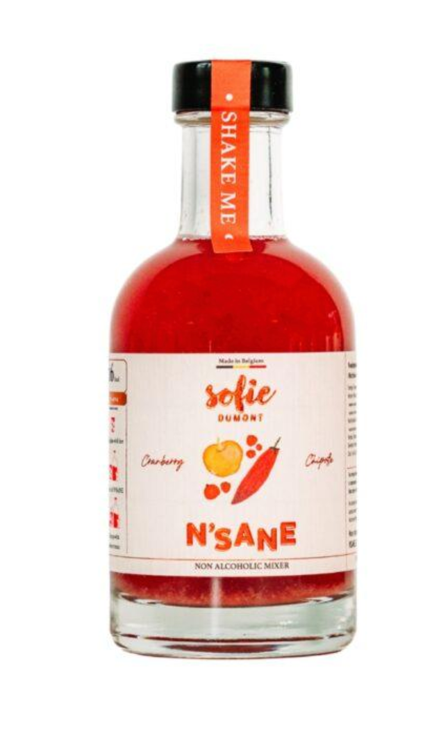 Ontdek de Cranberry-Chipotle Mix 200 ml van N’Sane — een unieke samenwerking met Sofie Dumont. Deze mixer brengt een verrassende smaakbalans tussen de frisse zuren van cranberry’s, de rokerige pit van chipotle-jalapeño en de zoetheid van lokaal geteelde appels. Perfect om te gebruiken in cocktails, mocktails, of simpelweg met bruiswater voor een verfrissend drankje.