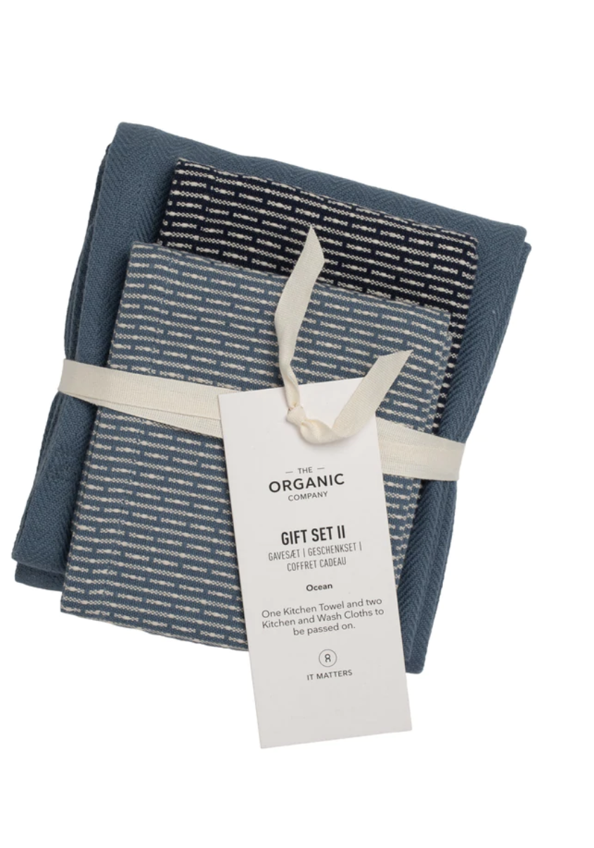 The Organic Company Set Handdoek & 2 Afwasdoekjes Ocean - The Organic Company