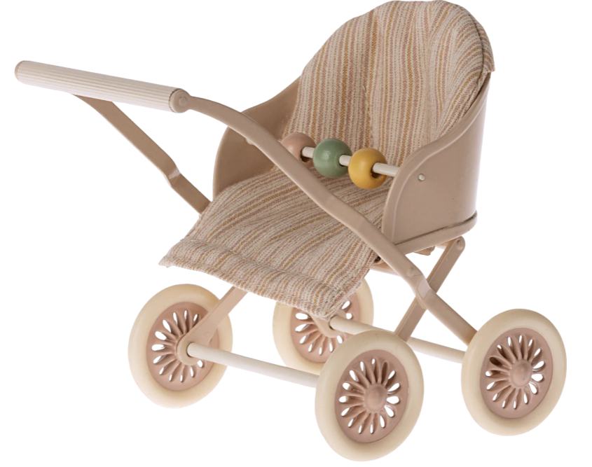 Perfect voor de Maileg poppen. Deze kinderwagen is perfect voor muizenfamilies met meer dan één baby. Je kunt gemakkelijk twee of drie baby's vervoeren.
