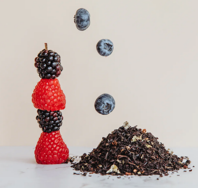 Zwarte thee, Bramen, Frambozen, Frambozenblaadjes, Zwarte bessen, Aroma
