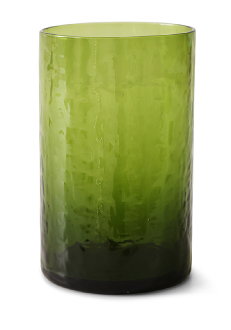 HKLIVING Tube High Glass – Olive is een stijlvolle drinkglas in rijke olijfgroene kleur, gemaakt van soda-glas met strakke vormgeving – perfect voor dagelijks gebruik en eigentijds tafelservies